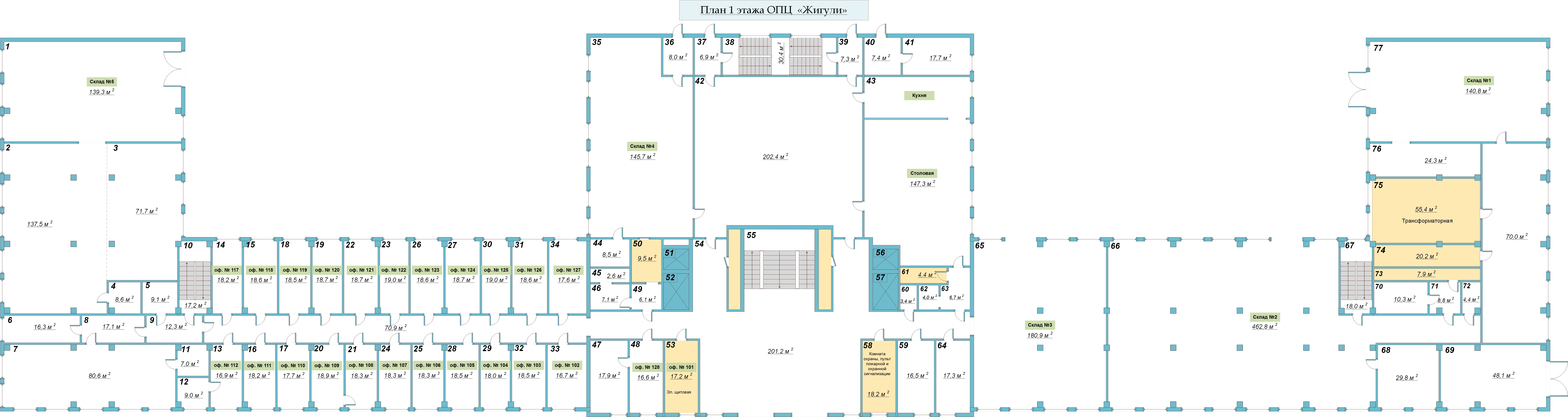 - вспомогательные/обеспечение (котельная, эл. щитовая, водоснабжение/водоотведение - 1 500 кв.м.