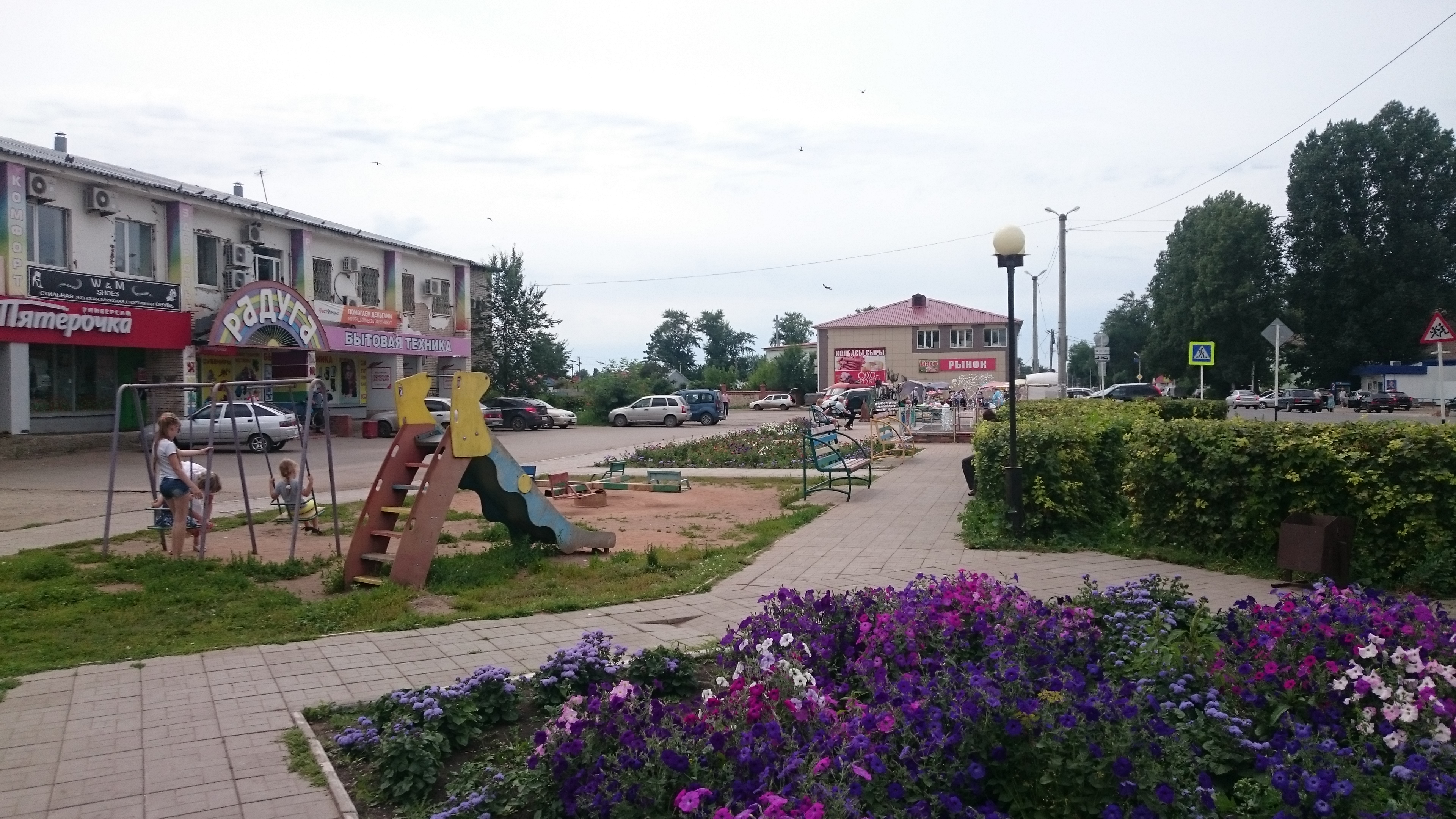 (гаражи, офисы, торговый зал, зем. Участок)Объект расположен в центре населённого пункта, является частью здания в котором расположен ТЦ Радуга, прилегающая территория облагорожена, рядом находятся несколько торговых центров и магазинов.