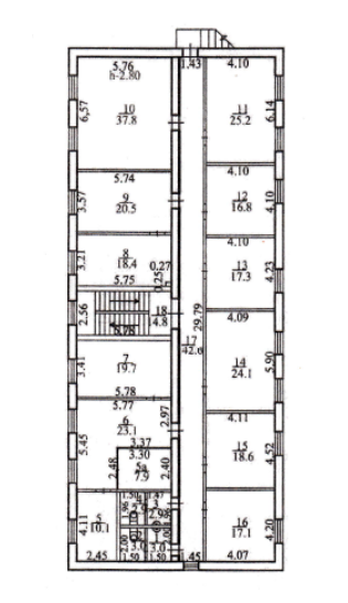 3 этаж – 7 кв. м. тех. помещение.