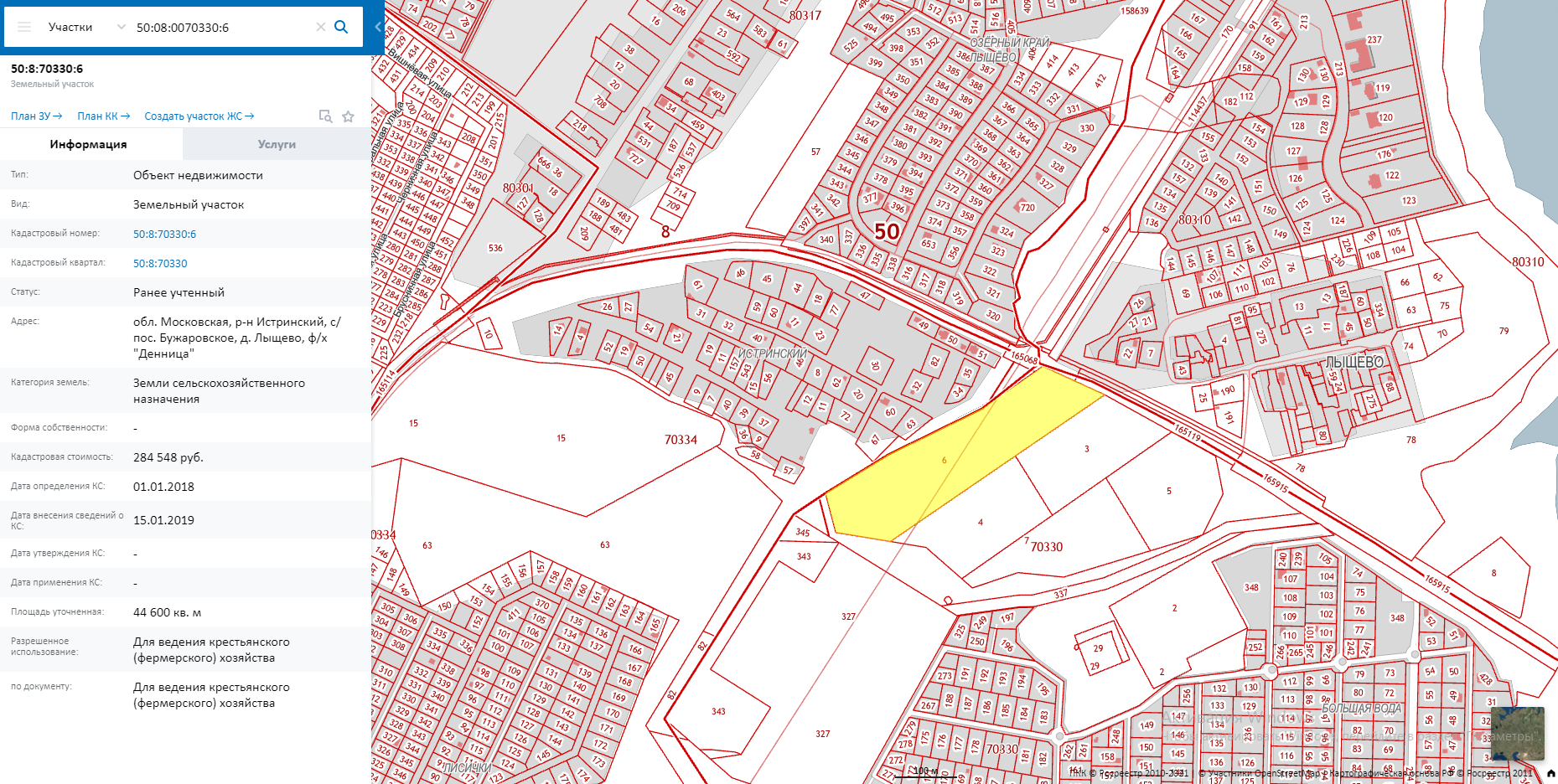 - 44600 кв.м., кад. номер: 50:08:0070330:6;