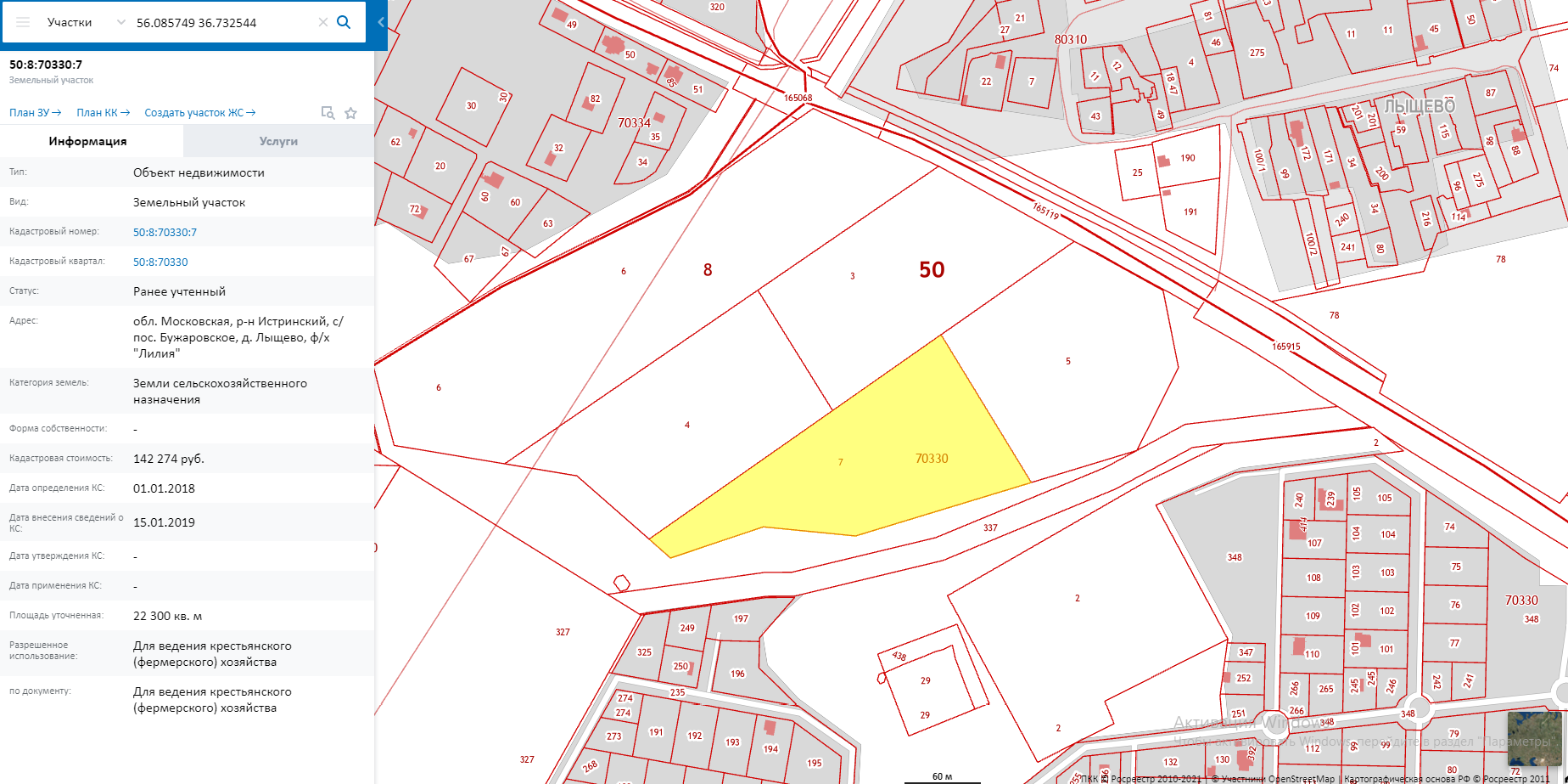 - 22300 кв.м., кад. номер: 50:08:0070330:7;