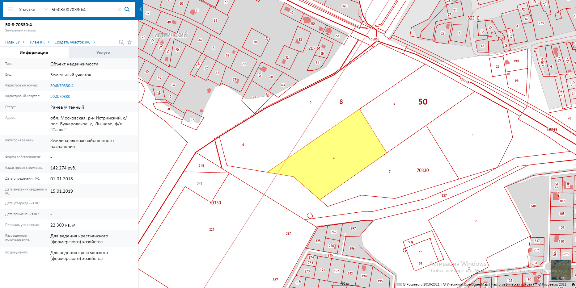 - 22300 кв.м., кад. номер: 50:08:0070330:4;