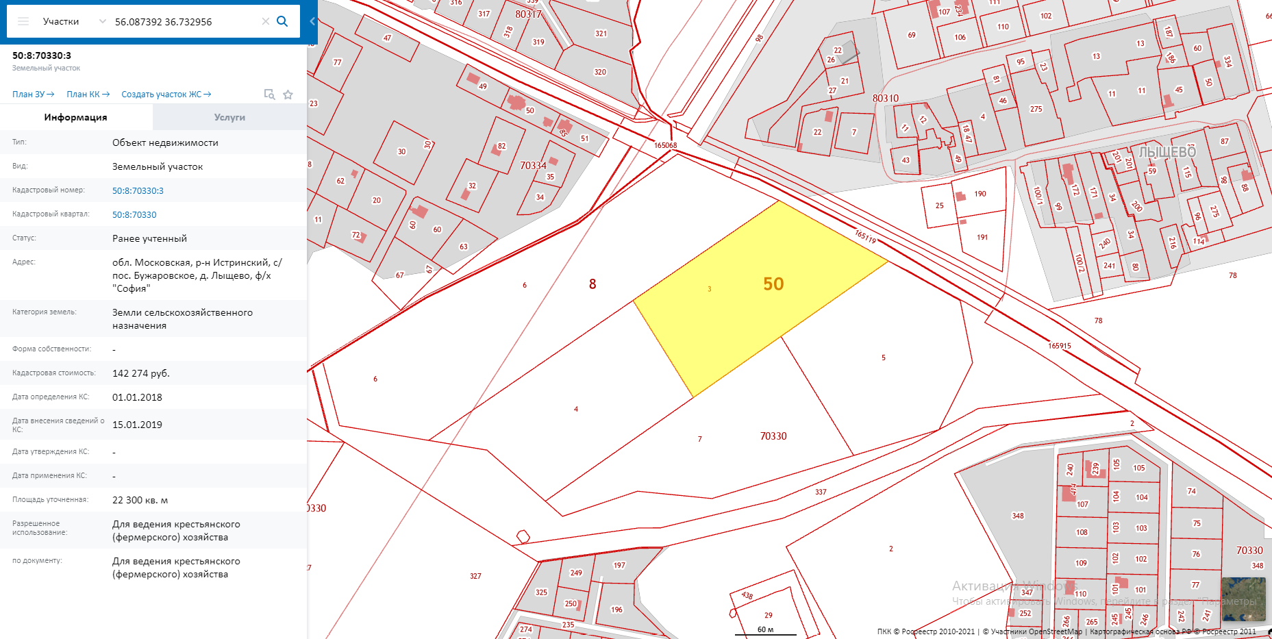 - 22300 кв.м., кад. номер: 50:08:0070330:3;