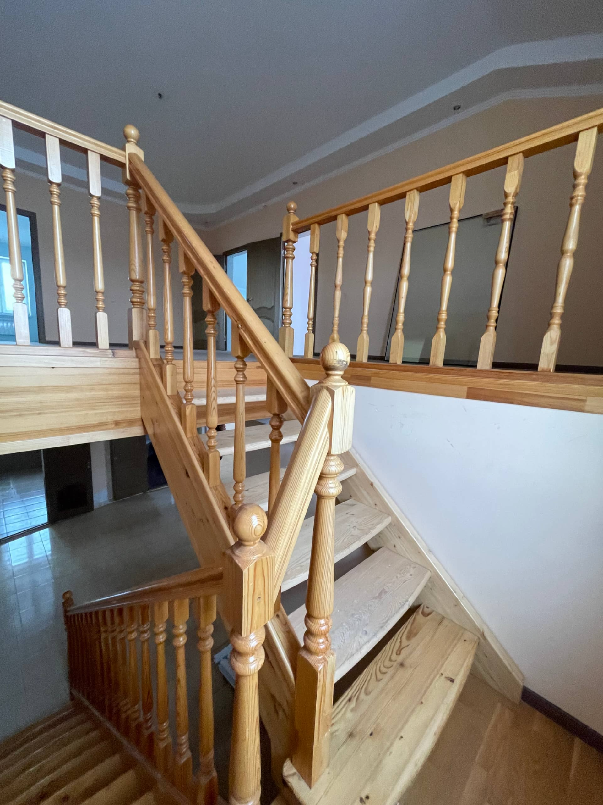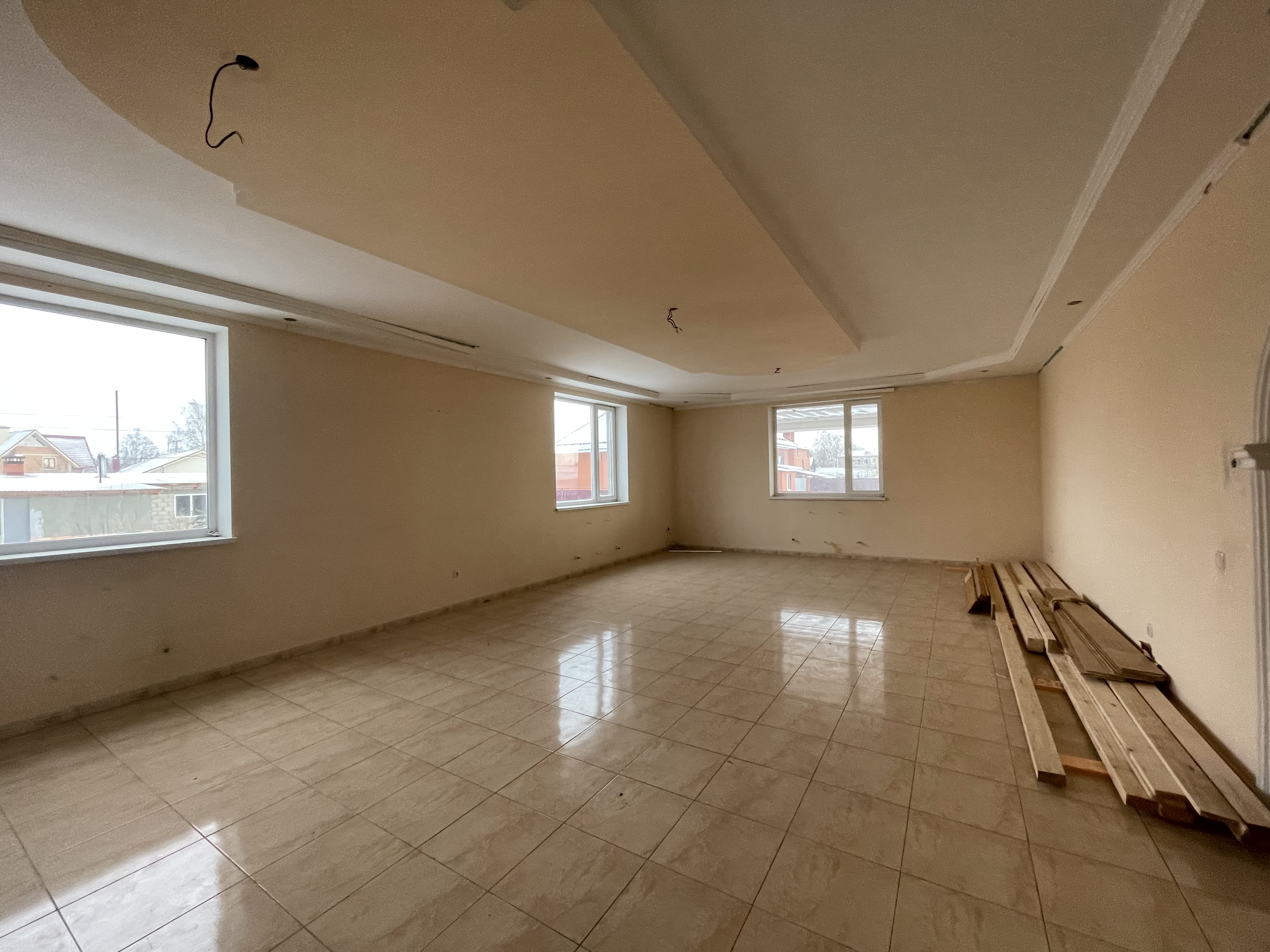 - нa 1-ом этaже: 3 жилых кoмнаты, cанузeл, кухня-стoлoвaя, холл;