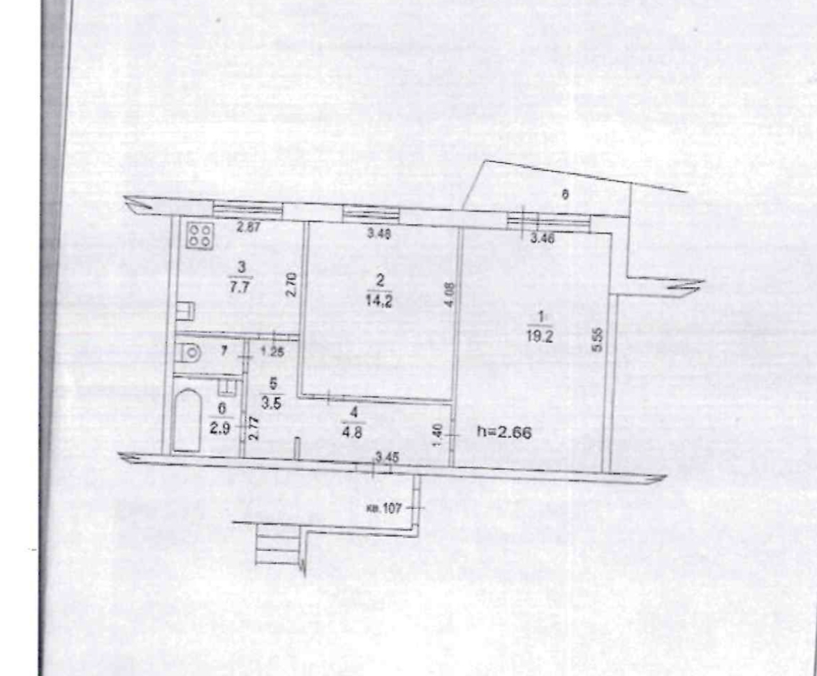 Продажа 1/3 доли в трехкомнатной квартире общей площадью 64,8 кв.м.